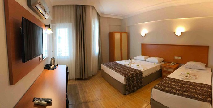 Отель Park Marina в Кемере предлагает гостям разнообразные удобства, включая сад, общий лаундж, террасу и ресторан. Отель расположен недалеко от таких популярных мест, как Общественный пляж Меркез-Бати, который находится в 300 метрах, Пляж Айишыгы в 800 метрах и Пляж Кемер в одном километре. Из окон отеля открывается вид на город. Комнаты в отеле оборудованы кондиционерами, телевизорами с плоским экраном и сейфами. В каждой комнате есть шкаф для одежды и собственная ванная комната с душем. Гостям предоставляются постельное белье и полотенца. Сотрудники стойки регистрации, говорящие на английском, русском и турецком языках, всегда готовы предоставить информацию о местных достопримечательностях и услугах. Отель Park Marina находится в 39 км от Торгового центра 5M Migros и в 40 км от Аквариума Анталии. Расстояние до аэропорта Анталии составляет 56 км, и отель предлагает платный трансфер от/до аэропорта. Представьте, что вы остановились в отеле Park Marina. Утром после завтрака в отеле вы отправляетесь на близлежащий пляж, чтобы насладиться солнцем и морем. Днем вы исследуете местные достопримечательности, такие как Аквариум Анталии, а вечером возвращаетесь в отель, чтобы отдохнуть в комфортабельной комнате или поужинать на террасе ресторана, наслаждаясь видами на город.