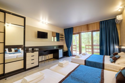 "Azov" pansionati Qozontip qo‘ltig‘i qirg‘og‘ida, Shchyolkino yaqinida joylashgan. Pansionat Sharqiy Qrimdagi Kerch va Feodosiya o‘rtasida qulay joylashgan bo‘lib, Anapa va Simferopol aeroportlaridan taxminan bir xil masofada joy olgan. 6,5 gektar maydonni egallagan pansionat 25 ta turli qavatli binodan iborat. Pansionatning sig‘imi 750 kishini tashkil etadi, standart xonadan apartament va "Deluks" toifasidagi xonalargacha bo‘lgan xonalar mavjud. Xonalarda dushli hojatxona, plazma televizorlar va boshqa maishiy texnika bilan ta'minlangan, ba'zilarida konditsionerlar o‘rnatilgan. Pansionat hududida oshxona va yozgi kafe faoliyat ko‘rsatadi. Dam oluvchilar uchun 19 metrlik ochiq basseyn va katta akvaparkni o‘z ichiga olgan to‘rtta akvazona, shuningdek, sauna, hammom va yopiq basseynli spa-markaz mavjud. Bilyard, stol tennisi, sport zali, ochiq sport maydonchalari va miltiq otish poligonidan foydalanish mumkin. Mutaxassis instruktorlar tomonidan pilates, aerobika va yoga darslari o‘tkaziladi. Teatr tomoshalari, kontsertlar va ko‘ngilochar tadbirlar muntazam ravishda o‘tkazib turiladi. Bolalar uchun diskotekalar tashkil etiladi, animatorlar ishlaydi, o‘yin xonasi va chiziqlar va arg‘imchoqlar bilan jihozlangan ochiq o‘yin maydonchasi, shuningdek, bolalar akvaparki mavjud. Plyaj pansionatdan 450 metr narida joylashgan. Plyajda kiyinish xonalari, dush, шезлонгlar va soyabonlar o‘rnatilgan, shuningdek, plyaj jihozlari ijarasi ishlaydi. "Azov" pansionatida qolganingizni tasavvur qiling. Kundaga sport zalida mashq qilish bilan boshlashingiz mumkin, keyin kafeda nonushta qilish, kunning qolgan qismini plyajda yoki akvaparkda o‘tkazish va kechqurun ko‘ngilochar tadbirlardan biriga tashrif buyurishingiz mumkin.