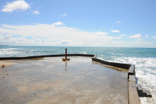1-qator, shaxsiy plyaj maydoni, qum va toshli plyaj.