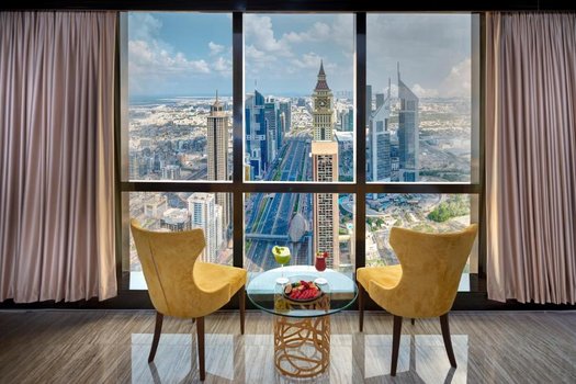Gevora mehmonxonasi, Dubaydagi Shayx Zayed shossesida joylashgan bo‘lib, to‘rt yulduzli darajadagi qulayliklarni taklif etadi va dunyodagi eng baland mehmonxonalar orasida yuqori o‘rinni egallaydi. O‘zining joylashuvi tufayli mehmonxona shaharning diqqatga sazovor joylarini kashf etmoqchi bo‘lgan ham tadbirkorlar, ham sayyohlar uchun ideal tanlov hisoblanadi. Mehmonxonaning barcha xonalari zamonaviy qulayliklar bilan jihozlangan, shu jumladan bepul Wi-Fi mavjud. Gevora mehmonxonasida 529 ta xona mavjud bo‘lib, Delyuksdan ikki kishilik lyukslargacha bo‘lgan variantlarda taklif etiladi, ularning har biri mehmonlar uchun qulaylik bilan ta’minlangan. Mehmonxonada 2 ta restoran faoliyat yuritadi, ular turli xil taomlarni taklif qiladi. Gevora Kitchen butun kun davomida xalqaro va mahalliy taomlarni rohatlanarli muhitda xizmat qiladi. Hovuz atrofidagi terasda mehmonlar Pool Bar barda ichimliklar va gazaklardan bahramand bo‘lishlari mumkin, tomdagi Highest View restorani esa Dubayga noyob panoramali ko‘rinishni taqdim etadi. Aktiv dam olish uchun mehmonxonada 13-qavatda zamonaviy jihozlangan sport klubi, asosiy hovuz, bolalar hovuzi va jakuzi mavjud. Sport klubi ikki alohida zalga bo‘lingan, biri erkaklar, ikkinchisi ayollar uchun. Biznes safarlari uchun mehmonxonada to‘liq ofis xizmatlari bilan ta’minlangan biznes markazi va 12 kishigacha mo‘ljallangan yig‘ilish xonasi mavjud. Gevora Dubay xalqaro moliya markazi va Jahon savdo markazi kabi asosiy biznes va savdo markazlariga bir necha daqiqalik masofada joylashgan. Mehmonxona Dubai Mall, Burj Xalifa va mashhur favvoralardan atigi 10 daqiqa uzoqlikda. Kite Beach va La Mer plyajlari ham yaqin atrofdagi 11 km masofada joylashgan. Dubay xalqaro aeroportiga 15 daqiqada, Al-Maktum xalqaro aeroportiga esa 40 daqiqada yetib borish mumkin.