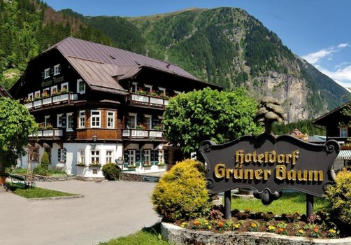 Hoteldorf Gruner Baum majmuasi tabiiy manzaralar orasida joylashgan bo‘lib, uning maydoni 60 gektarga yaqin. Arxitekturasi alp qishlog‘i uslubida qurilgan. Majmua an’anaviy avstriya uslubida bezatilgan beshta mustaqil binodan iborat. Hududda qishki bog‘ va piyodalar yo‘laklari mavjud. O‘zining Fox Farm fermasi faoliyat yuritadi. Majmua maydoni kichik bir qishloq sifatida tashkil etilgan. Bu yechim Avstriyaning eski atmosferasini yaratadi. Atrofida tog‘ yo‘llari va sayr joylari joylashgan. Bu hudud tabiatda dam olish va har qanday faslda faol dam olish uchun mos keladi. Mehmonlar majmua hududida vaqt o‘tkazishlari yoki atrof-muhitda sayr qilishlari mumkin. Yaqin atrofda restoranlar va mintaqaning turistik yo‘nalishlari mavjud. Agar mehmon Hoteldorf Grüner Baumda qolgan deb tasavvur qilsak, uning ertalabi majmuaning ichki ko‘chalari bo‘ylab sayr qilishdan boshlangan bo‘lar edi. Keyin u fermaga tashrif buyurgan yoki tog‘larga yo‘l olgan bo‘lar edi. Kunning davomida u ochiq havoda vaqt o‘tkazgan bo‘lar edi. Kechqurun u majmuadagi binolardan biriga qaytib, osoyishta muhitda dam olgan bo‘lar edi. Bundan tartib majmuaning tuzilishi va joylashuviga to‘liq mos keladi.