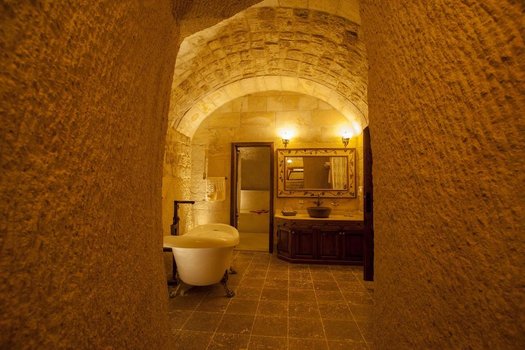 Kapadokiyadagi Kayakapi Premium Caves mehmonxonasi Ürgüp shahrida joylashgan bo‘lib, qadimgi g‘or xonalaridan noyob tarzda qayta tiklanib, mehmonlarga Kapadokiya manzarasi bilan zamonaviy jihozlangan lyuks xonalarni taklif etadi. Har bir xonada bepul Wi-Fi, isitiladigan pol, konditsioner, LED yoritgichli HD televizor, Nespresso kofe mashinasi va iPod yoki Android uchun dok stantsiyasi mavjud. Barcha xonalarda bepul kosmetika to‘plamlari bilan shaxsiy hammomlar, ba‘zi lyuks xonalarda esa qo‘shimcha qilib kamin va terassa yoki patio mavjud. Maide restoranida mehmonlar Kapadokiya va xalqaro taomlarini o‘z ichiga olgan boy nonushta taomlaridan bahramand bo‘lishlari mumkin. Tushlik va kechki ovqat mahalliy va xalqaro menyudan tanlash imkoniyati bilan xizmat qilinadi. Manzara bistrosida esa yengil gazaklar va turli ichimliklar taqdim etiladi. Mehmonxonaning spa markazi Davut-Aga tarixiy uyi yonidagi suzish havzasi yaqinida joylashgan. Maide restorani esa kompleksning quyi qismida. Qabulxona 24 soat ishlaydi va xonaga ovqat va ichimliklar yetkazib berish xizmati mavjud. Mehmonlar uchun Ürgüp markaziga bepul transfer xizmati taqdim etiladi. Mehmonxona Göreme Milliy bog‘idan 8,5 km, Avanos shahar markazidan 13 km uzoqlikda joylashgan. Nevşehir-Kapadokiya aeroportigacha bo‘lgan masofa 48 km, Kayseri-Erkilet aeroportigacha esa 75 km. Mehmonxona hududida bepul shaxsiy avtoturargoh mavjud. Kayakapi Premium Caves mehmonxonasida qolganingizni tasavvur qiling. Kuningizni Maide restoranida nonushta qilib boshlashingiz, keyin esa tarixiy g‘orlarni kuzatishga chiqishingiz yoki spa markazida dam olishingiz mumkin. Kechqurun Kapadokiyaning go‘zal manzaralarini tomosha qilib restoranda kechki ovqat bilan damlashingiz va kunni lyuks xonangiz terassasida quyosh botishini tomosha qilib yakunlashingiz mumkin.